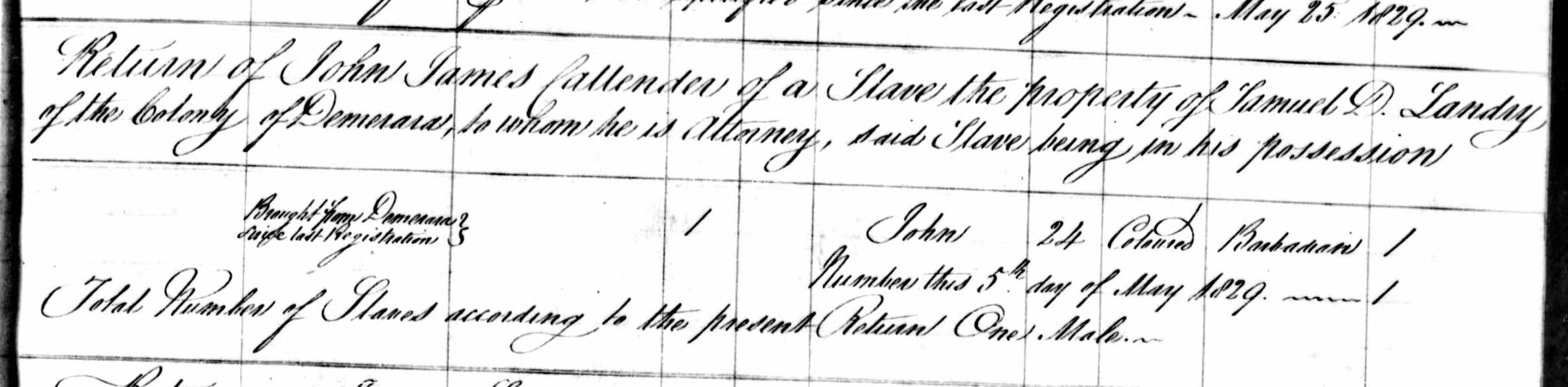 Samuel D. Landry propriétaire d'un esclave à la Barbade en 1829.