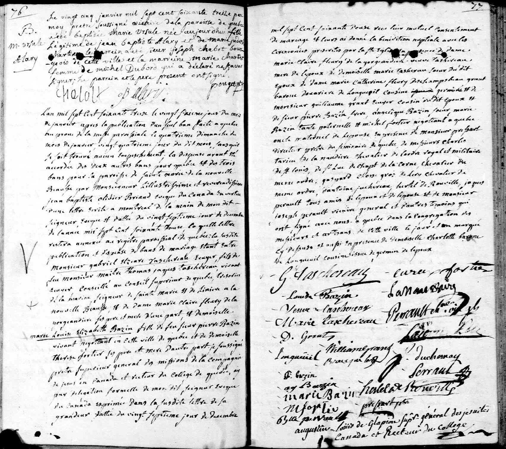 Notre-Dame de Québec, 26 janvier 1773
