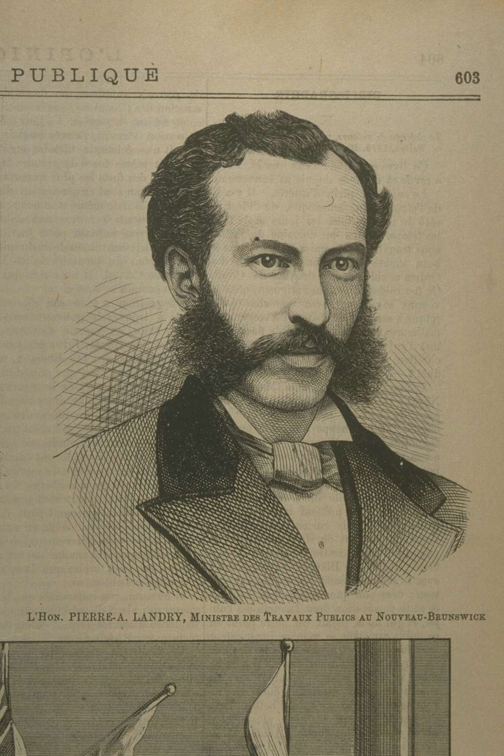 Biographie provenant du Site du Dictionnaire biographique du Canada en ligne de Bibliothèque et Archives Canada. LANDRY, sir PIERRE-AMAND, avocat, homme politique et juge, né le 1er mai 1846 à Memramcook, Nouveau-Brunswick, quatrième des neuf enfants d’Amand Landry* et de Pélagie Caissie (Casey) ; le 17 septembre 1872, il épousa à Saint-Jean, Bridget Annie McCarthy, et ils eurent 11 enfants, dont quatre moururent en bas âge ; décédé le 28 juillet 1916 à Dorchester, Nouveau-Brunswick. Né dans une des plus anciennes communautés acadiennes du Nouveau-Brunswick, Pierre-Amand Landry était issu d’une famille dont la présence dans les Maritimes remontait aux origines de l’Acadie. Son père, considéré comme l’un des chefs de Memramcook, avait été instituteur avant d’acheter une ferme. L’année de la naissance de Pierre-Amand, il fut élu à la Chambre d’assemblée pour représenter la circonscription majoritairement anglophone de Westmorland, devenant ainsi le premier député d’origine acadienne du Nouveau-Brunswick. Pierre-Amand fit ses études primaires à l’école paroissiale de Memramcook-Ouest. Très tôt, son père, qui entrevoyait pour lui une carrière en politique, se chargea de sa formation. Vers l’âge de 13 ans, il le fit inscrire à la Fredericton Collegiate School. Son séjour de deux ou trois ans à Fredericton lui permit de se familiariser avec la culture anglaise. Il s’initia à un âge relativement précoce à la politique en se rendant écouter les débats lorsque son père siégeait à l’Assemblée. Détenteur d’un brevet d’enseignement de troisième classe, il enseigna quelques années dans le sud-est de la province afin de gagner suffisamment d’argent pour poursuivre ses études. Landry fut parmi les premiers étudiants inscrits au collège Saint-Joseph à Memramcook dès son ouverture le 10 octobre 1864 [V. Camille Lefebvre*]. Il s’y perfectionna en art oratoire dans le cadre des activités de l’académie Saint-Jean-Baptiste, une société littéraire. En 1867, il commença un stage de clerc à Dorchester dans le cabinet d’avocat d’Albert James Smith*, ancien premier ministre de la province. Reçu attorney en octobre 1870 et admis au barreau un an plus tard, Landry fut le premier Acadien à devenir avocat. Il installa son bureau et élut domicile à Dorchester, chef-lieu du comté de Westmorland. En 1872, il épousa Bridget Annie McCarthy, fille de Timothy McCarthy, homme d’affaires d’origine irlandaise de Fredericton et ami de son père. L’année 1870 marqua, pour Landry, le début d’une carrière politique bien remplie, qui serait jalonnée de premières pour un Acadien. Doté de qualités de meneur et d’une grande ambition, il se croyait destiné à devenir un leader des Acadiens. Peu avant les élections provinciales de 1870, son père se retira de la politique et, âgé d’à peine 24 ans, Pierre-Amand décida de prendre sa relève. Choisi comme candidat acadien dans la circonscription de Westmorland, il fut élu le 5 juillet 1870. La carrière politique du jeune Landry débutait au moment où la controverse sur la réforme scolaire déclenchait des conflits ethniques et religieux sans précédent, et poussait les Acadiens du Nouveau-Brunswick à défendre publiquement leurs intérêts. Durant la campagne électorale, Landry avait dénoncé le projet du gouvernement de George Edwin King* d’établir un réseau d’écoles publiques, car il prônait plutôt un système d’écoles séparées financées par le gouvernement. Constatant son influence auprès des électeurs catholiques, le parti au pouvoir tenta d’obtenir son appui tacite au projet en lui promettant le portefeuille de commissaire des Travaux publics, mais il refusa de se laisser soudoyer. En avril 1871, l’Assemblée du Nouveau-Brunswick entama l’étude du projet de loi qui visait à créer un réseau d’écoles publiques financées par l’État à même les fonds provenant d’une nouvelle taxe scolaire qui s’appliquerait à tous. Un mois plus tard, on ajouta au texte un article qui prévoyait que les écoles régies par la loi seraient non confessionnelles. Malgré l’opposition du clergé, des députés et de la presse catholiques, le Common Schools Act fut adopté par une forte majorité protestante. Les catholiques, dont la plupart étaient Acadiens, refusèrent de payer la taxe scolaire, même sous la contrainte, et demandèrent l’aide du gouvernement fédéral, qui décida de ne pas intervenir [V. John Costigan]. La réforme scolaire devint l’enjeu de la campagne électorale de 1874. Le gouvernement sollicita l’appui de la majorité anglo-protestante afin d’empêcher les catholiques d’obtenir le pouvoir nécessaire pour changer la loi et il remporta une victoire écrasante. Landry figurait parmi ceux qui perdirent leur siège. Malgré sa défaite électorale, Landry ne tarda pas à reprendre sa place à l’avant-garde de la lutte pour les droits des Acadiens car, 15 mois plus tard, il faisait la une des journaux de la province, cette fois en sa qualité d’avocat. À Caraquet, en 1875, une manifestation d’Acadiens contre la taxe scolaire avait dégénéré en échauffourée, entraînant la mort d’un jeune manifestant acadien et d’un « volontaire » anglophone [V. Robert Young*]. Neuf Acadiens furent accusés du meurtre de la victime anglophone, ce qui donna lieu à un procès sensationnel à Bathurst. À cette occasion, Landry agit à titre d’assistant de l’avocat de la défense, Samuel Robert Thomson*. Landry et son collègue réussirent à faire libérer les accusés. La réputation de Landry comme avocat de talent et défenseur des Acadiens en bénéficia grandement. De son côté, le gouvernement provincial en arriva à un compromis avec la minorité catholique en permettant, entre autres, l’enseignement de la religion en dehors des heures de classe [V. John Sweeny*]. Toujours soucieux de l