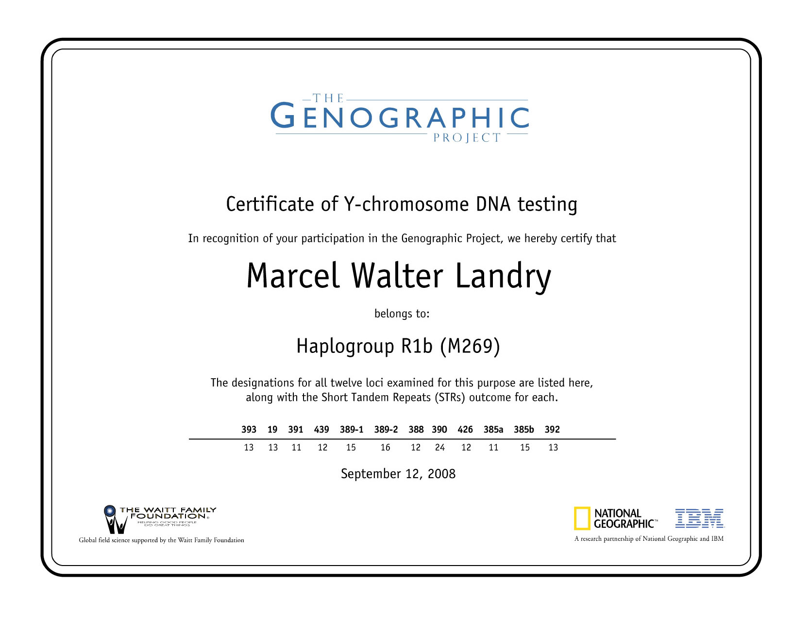 Rapport de mes résultats dans le cadre du programme The Genographic Project de la société National Geographic. 12 septembre 2008