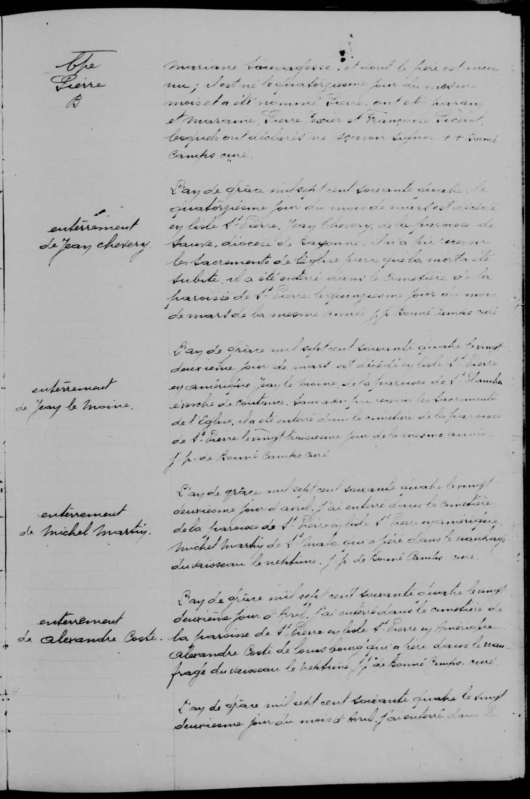 Registre de St-Pierre dans les Iles St-Pierre et Miquelon |