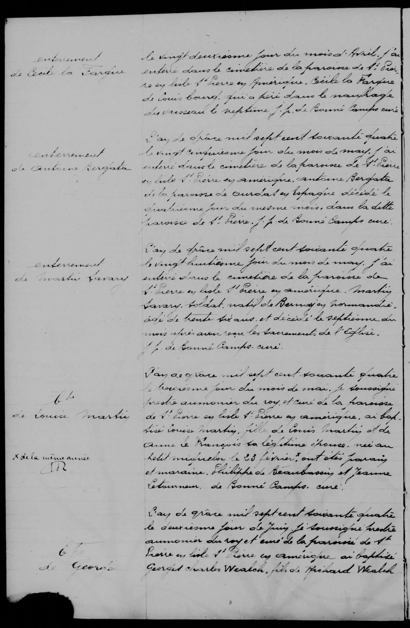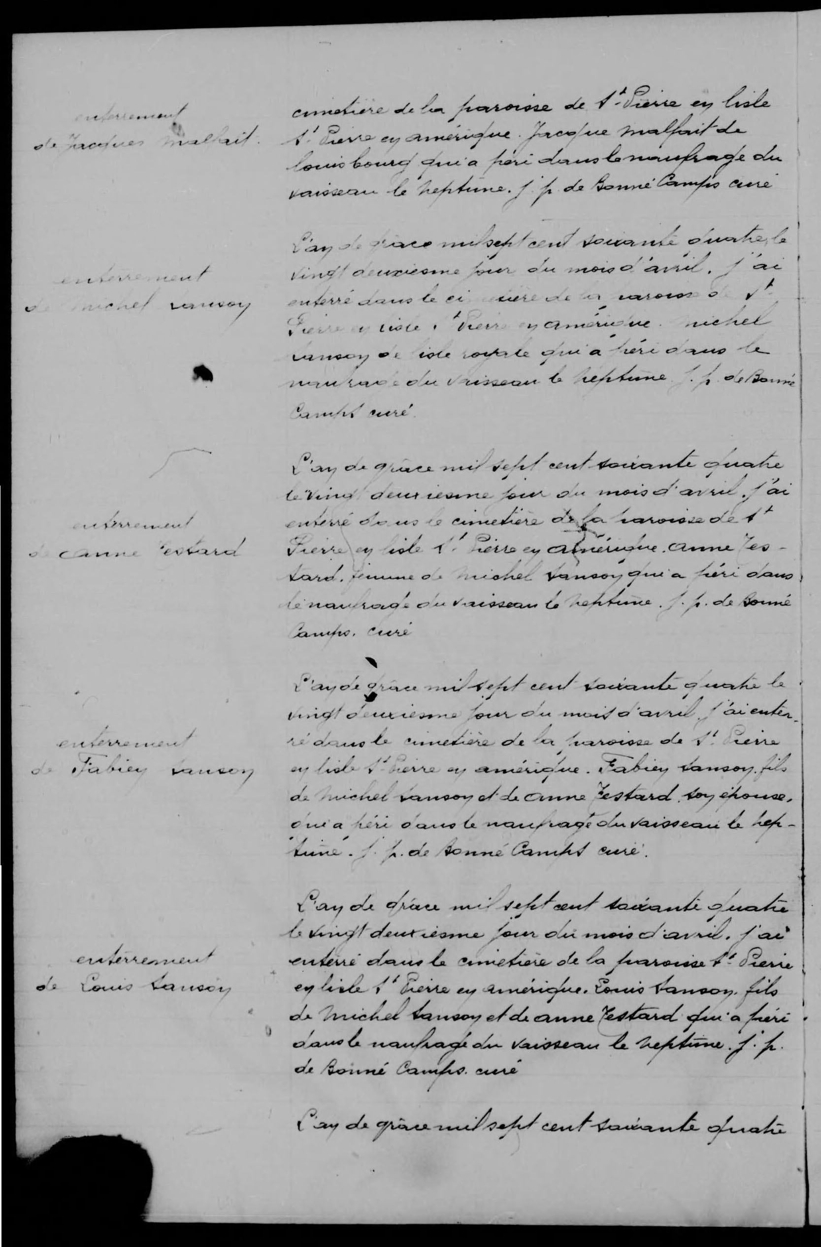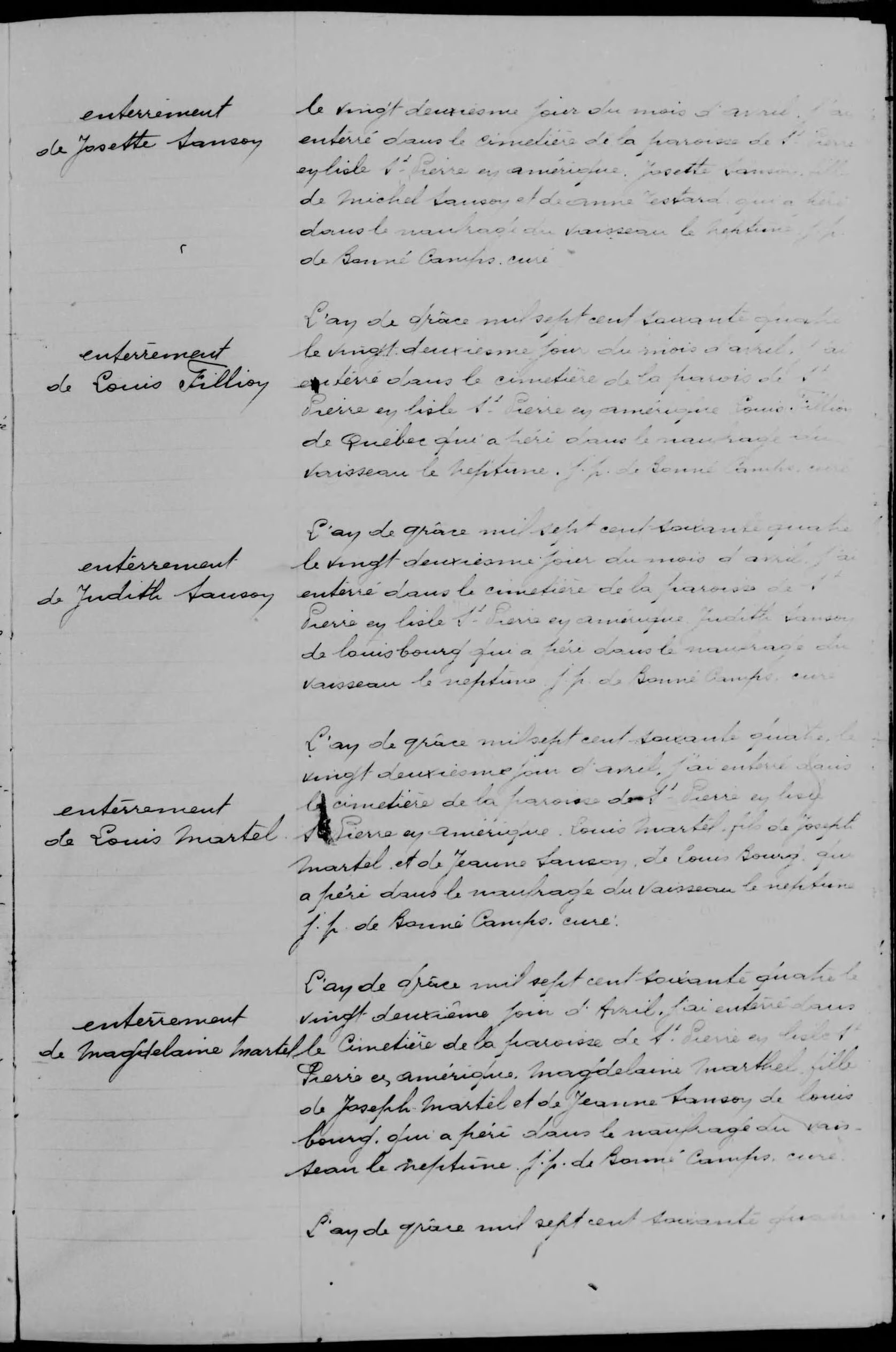 la suite sur l’ile St. Pierre le 22 avril 1764. Ça fait une triste et