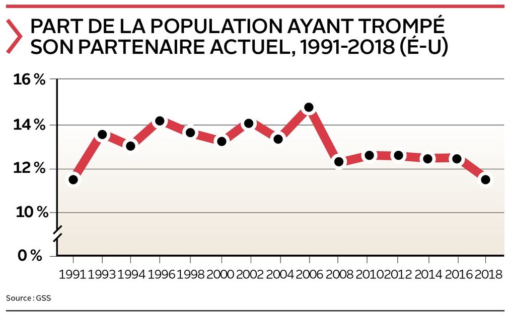 annuellement aux États-Unis) comporte une question sur l’infidélité montre
