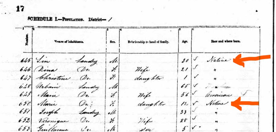 1861 on utilise le mot NATIVE pour signifier que la personne est native du
