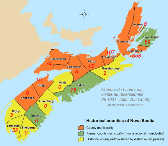 Landry et associés inscris au recensement de la Nouvelle-Écosse en 1931.