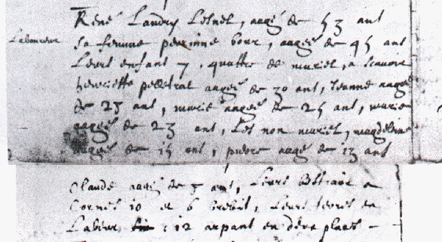 Liste dans ma généalogie des personnages au recensement de 1752.