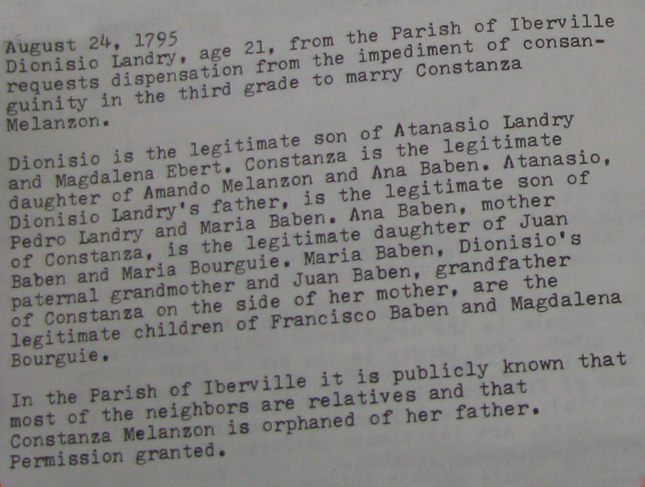 | Shirley Chaisson Bourquard, Marriage dispensations in the
