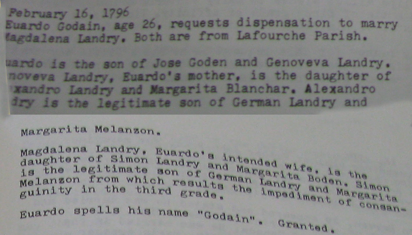 | Shirley Chaisson Bourquard, Marriage dispensations in the