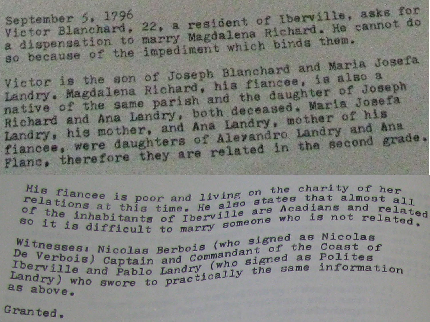 | Shirley Chaisson Bourquard, Marriage dispensations in the
