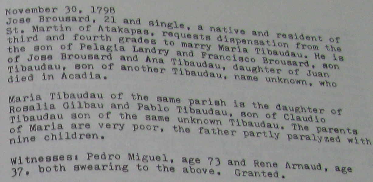 | Shirley Chaisson Bourquard, Marriage dispensations in the