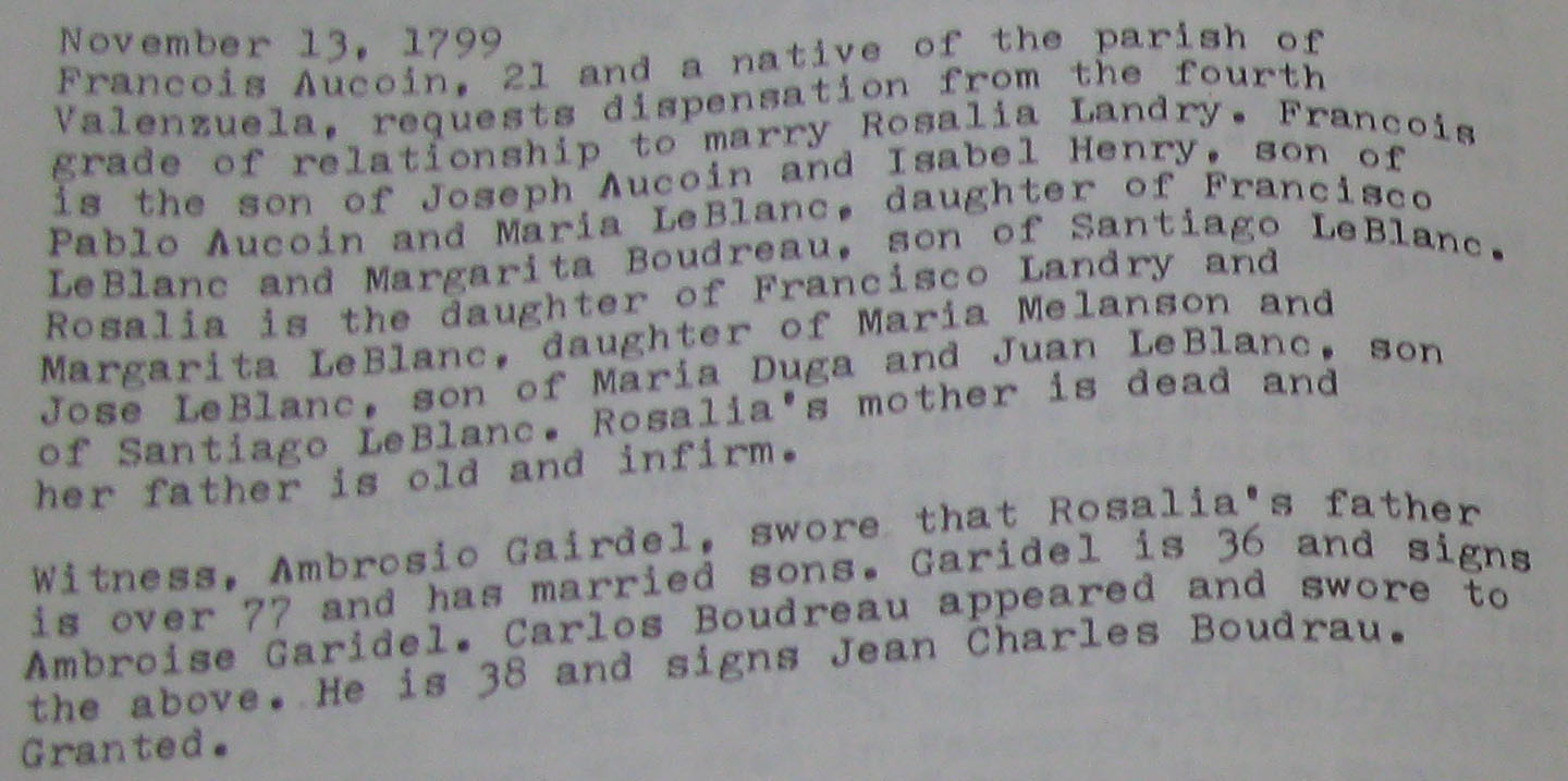 | Shirley Chaisson Bourquard, Marriage dispensations in the