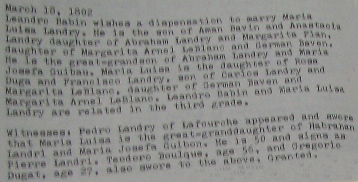 Témoins : Pedro Landry de Lafourche jure que Maria Luisa est