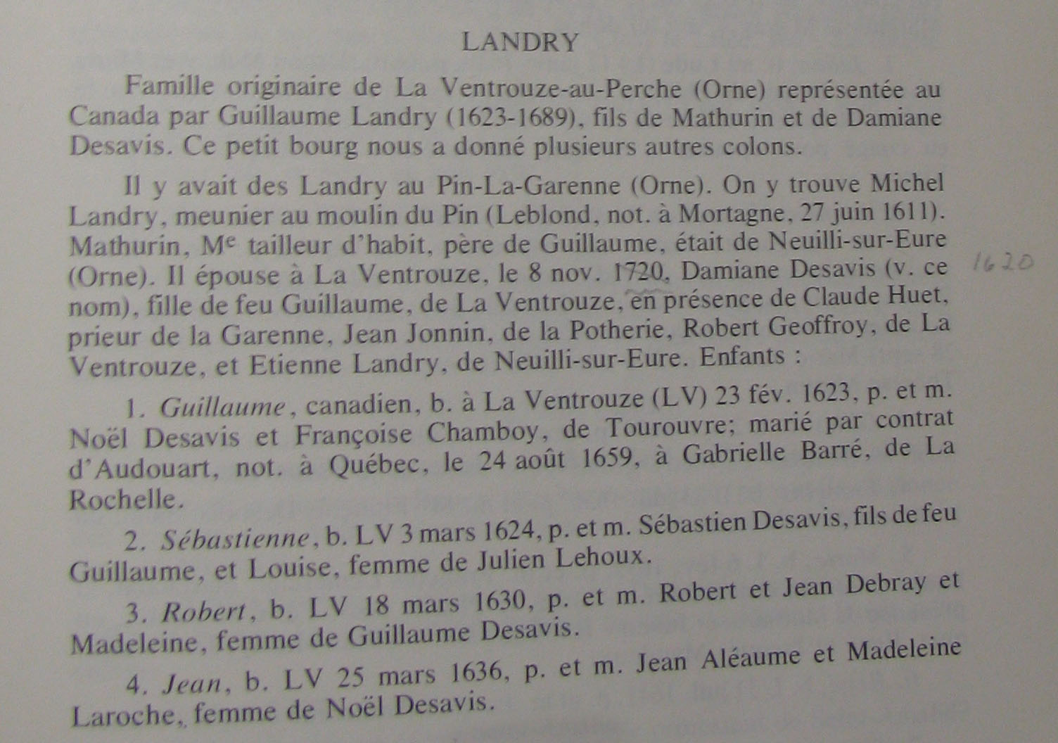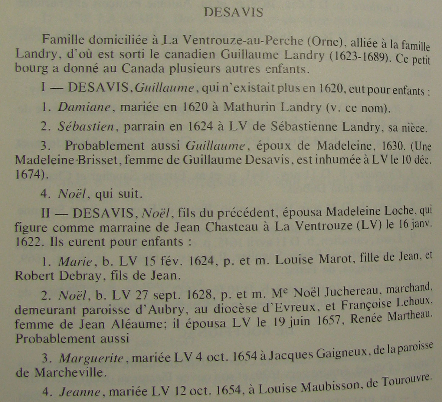 1. Guillaume, canadien, b. à La Ventrouze (LV) 23 fév 1623, p. et m. Noël