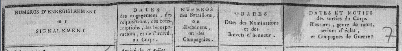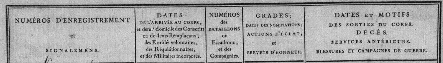 42e régiment d'infanterie de ligne, 2 juin 1811-27 avril 1813 (matricules 6 601 à 8 400).SHD/GR 21 YC 360 Joseph Landry fils de Denis et Tiennette Freney né le ? à Chouzelot, Doubs, Matricule 7691