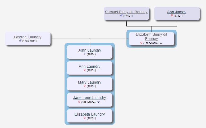 George Laundry (1785-1861) possiblement né à Menheniot dans les Cornouailles, marié à Elizabeth Benney le 30 octobre 1810 à Saint Cleer dans les Cornouailles.