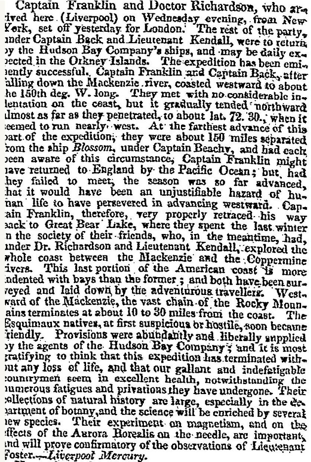 John Franklin, lors de son périple qu'il fera vers l'Arctique de mars 1825 à